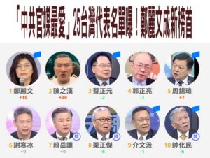 「中共官媒最愛」25台灣代表名單曝!鄭麗文成新榜首 5新秀首上榜 「台灣資訊環境研究中心…