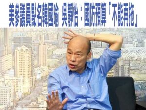 美參議員點名韓國瑜 吳靜怡:國防預算「不能再拖」 台灣立法院延宕國防特別預算案的審議,上月底才訪台的…