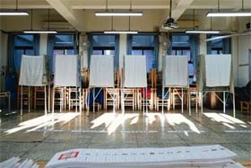 ↑圖上說明:一名台灣年輕女性選舉時在投票所投票。台灣現行規定要求選民必須回到「戶籍地」投票,年輕族群因在外地求學工作,被認為受影響最深。