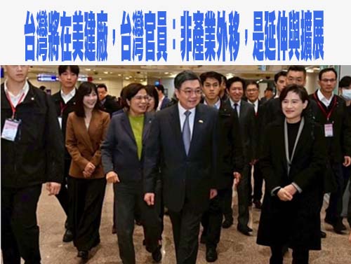 台灣將在美建廠,台灣官員:非產業外移,是延伸與擴展