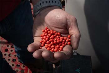 M-1 在伊利諾州,一位美國農民查看大豆種子,圖為他手中的種子圖像來源,Getty Images